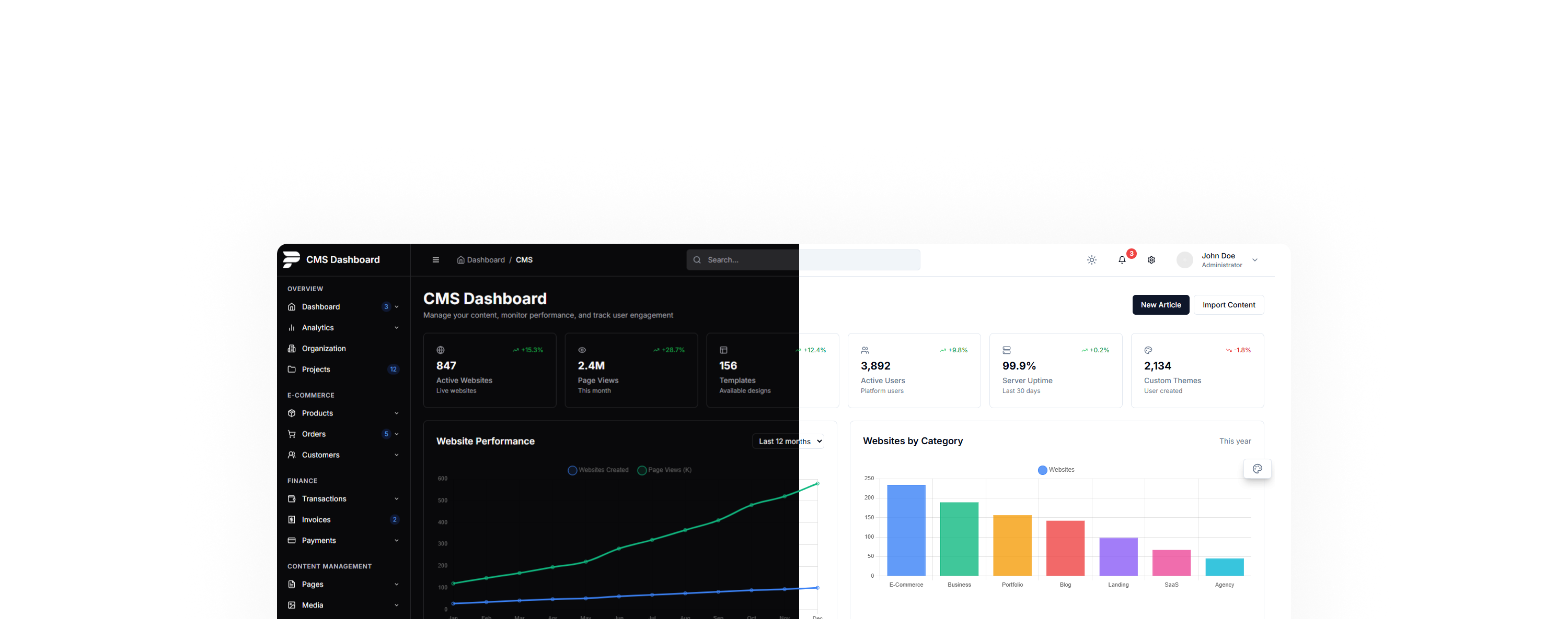 Interaktives Analytics-Interface mit Echtzeitdaten, feinem Spacing und Dark/Light Switch.